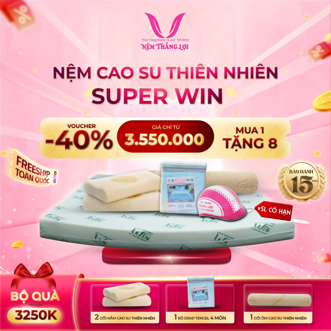 NỆM CAO SU THIÊN NHIÊN SUPER WIN THẮNG LỢI